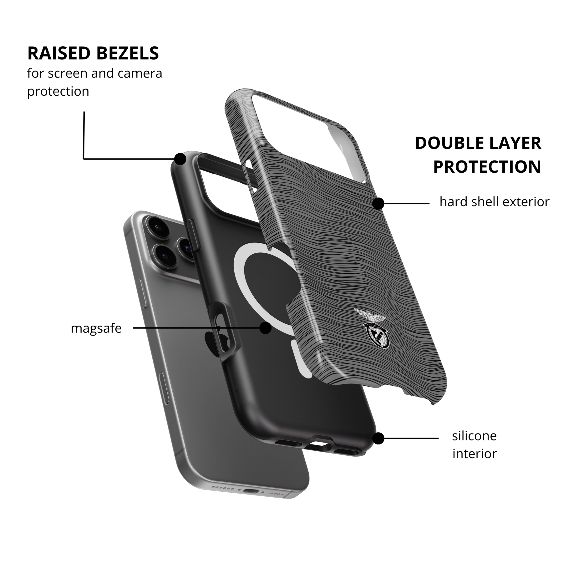 • Camada dupla: interior de silicone + exterior de TPU duro