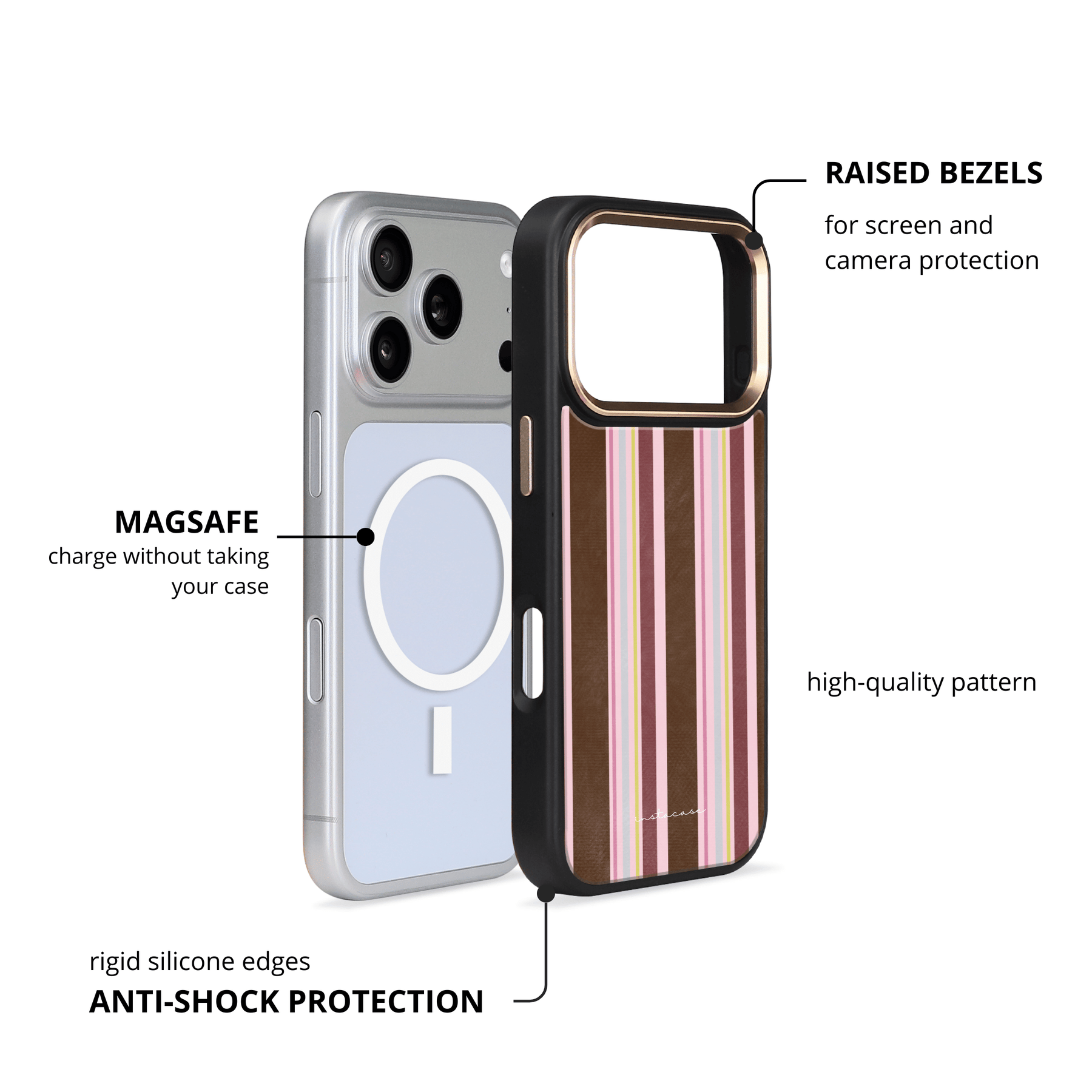 Proteção em dupla camada, acabamento brilhante e MagSafe integrado.