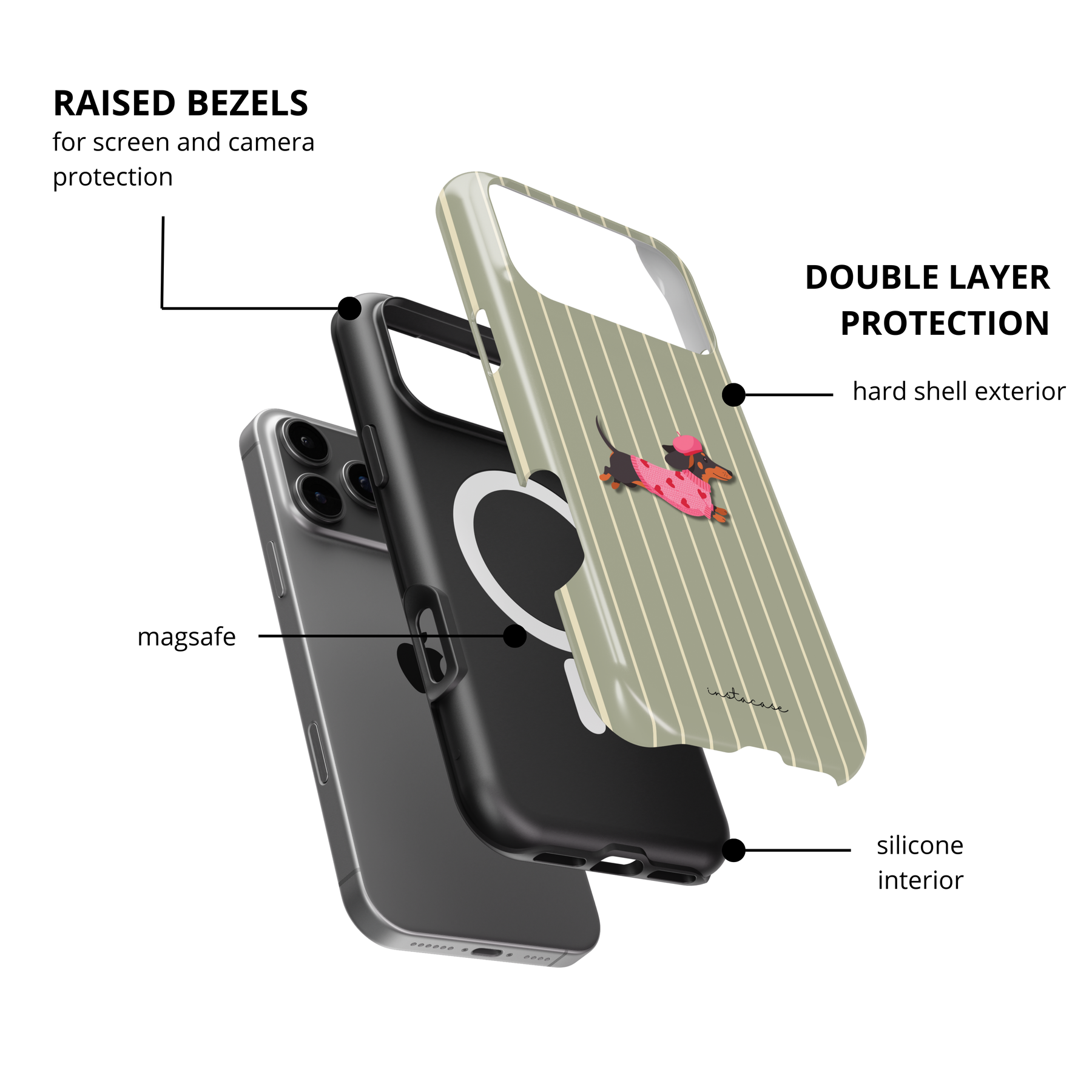 Proteção em dupla camada, acabamento brilhante e MagSafe integrado.