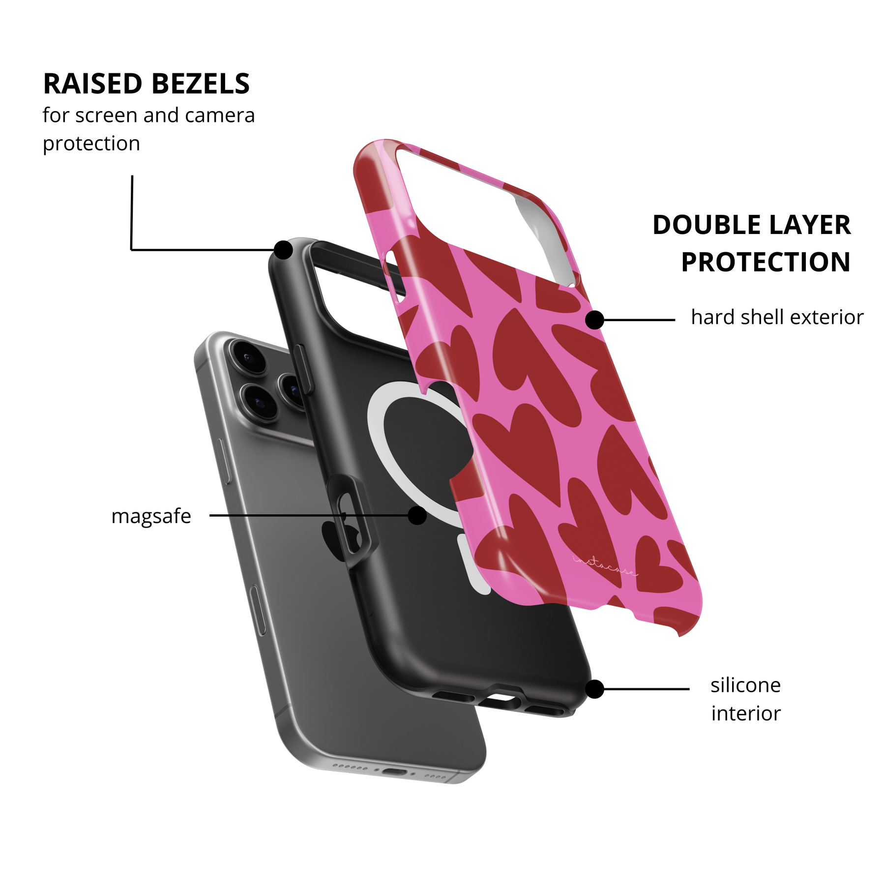 Proteção em dupla camada, acabamento brilhante e MagSafe integrado.