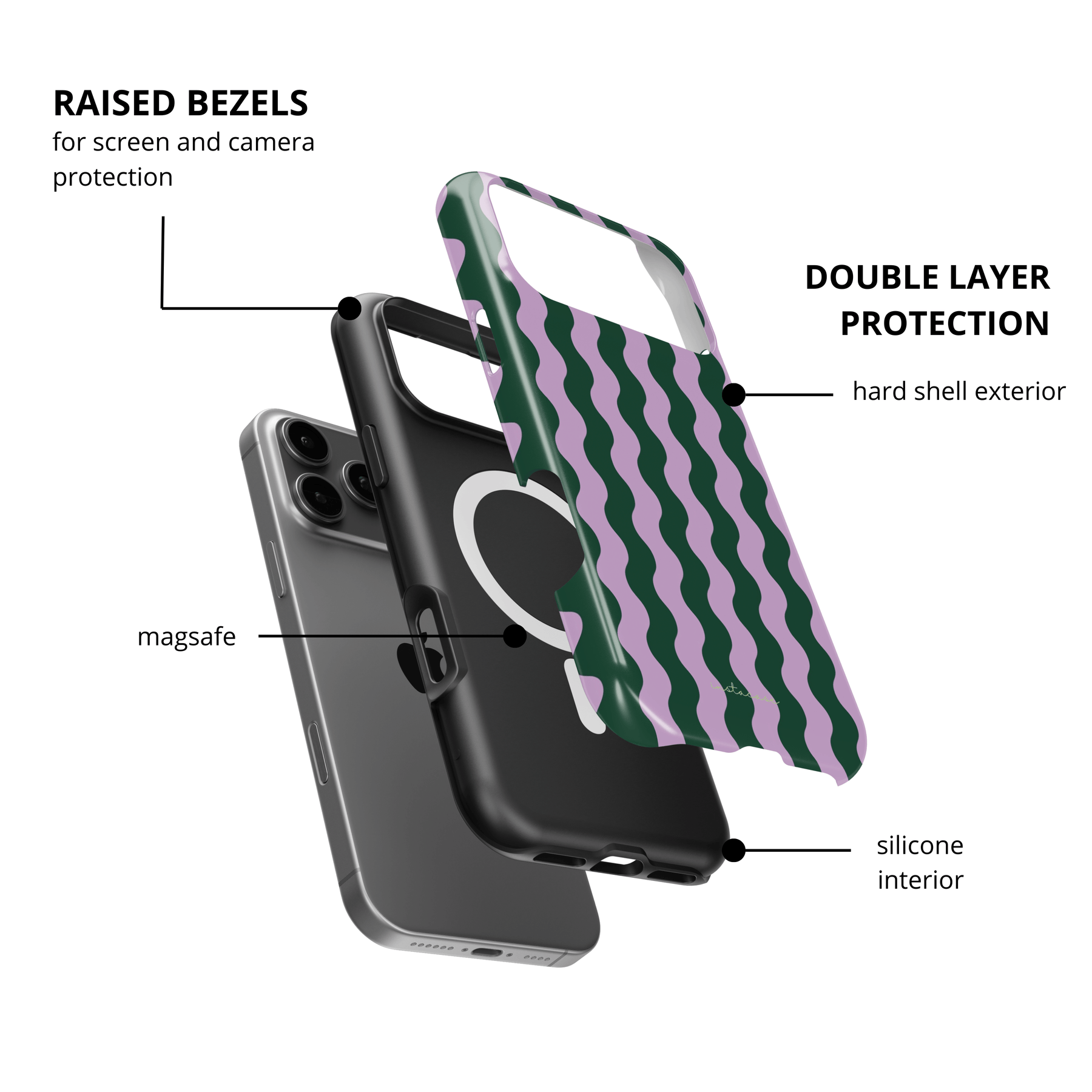 Double-layer protection, glossy finish, and integrated MagSafe.