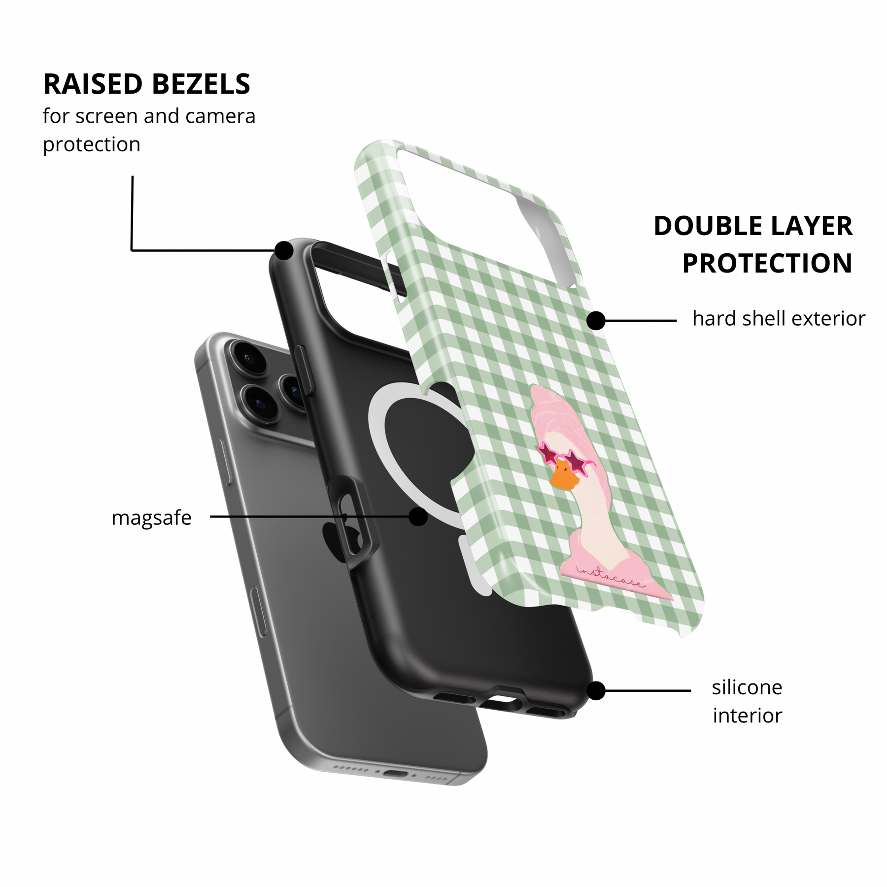 • Double layer: silicone interior + hard TPU exterior
