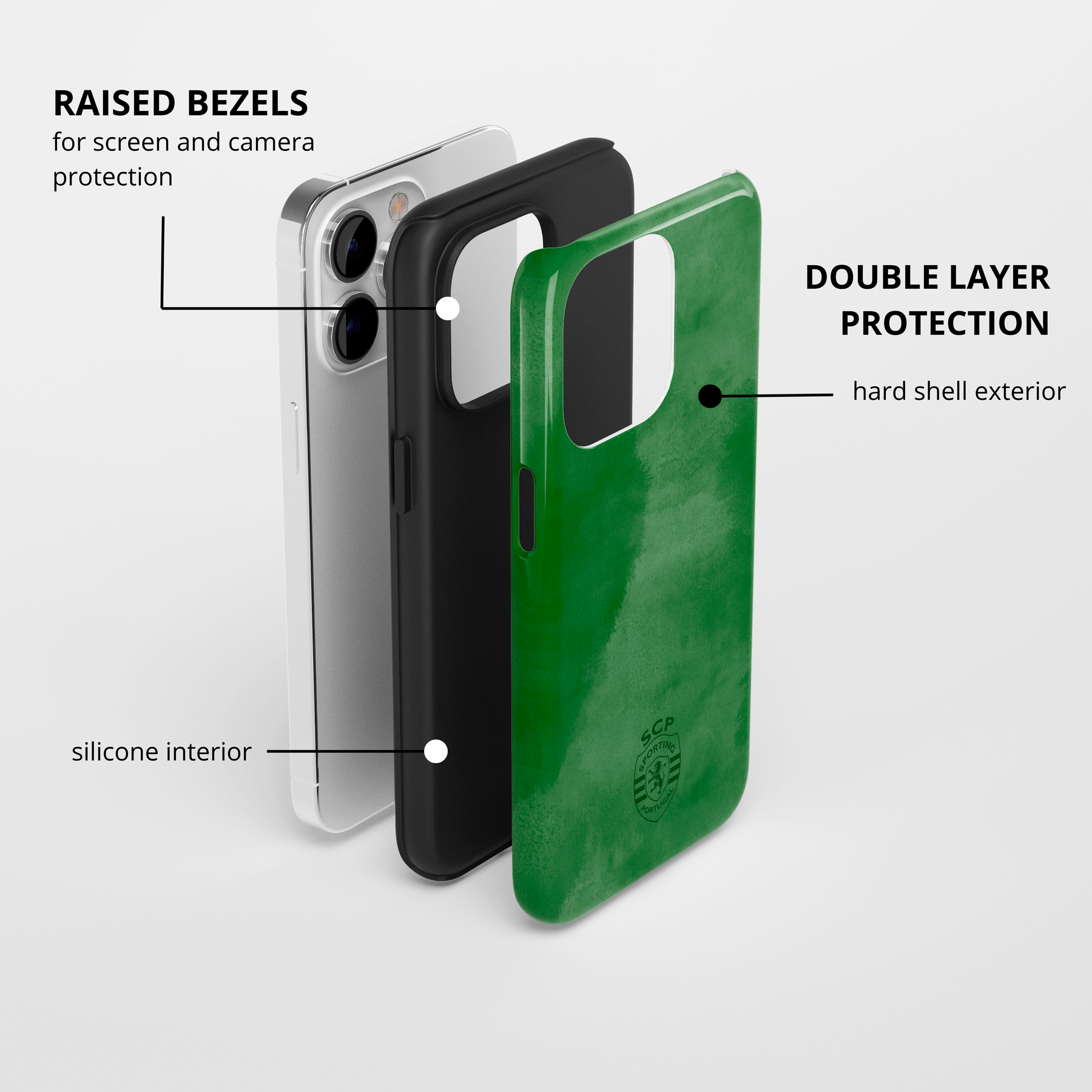 - Double layer: silicone interior + hard TPU exterior