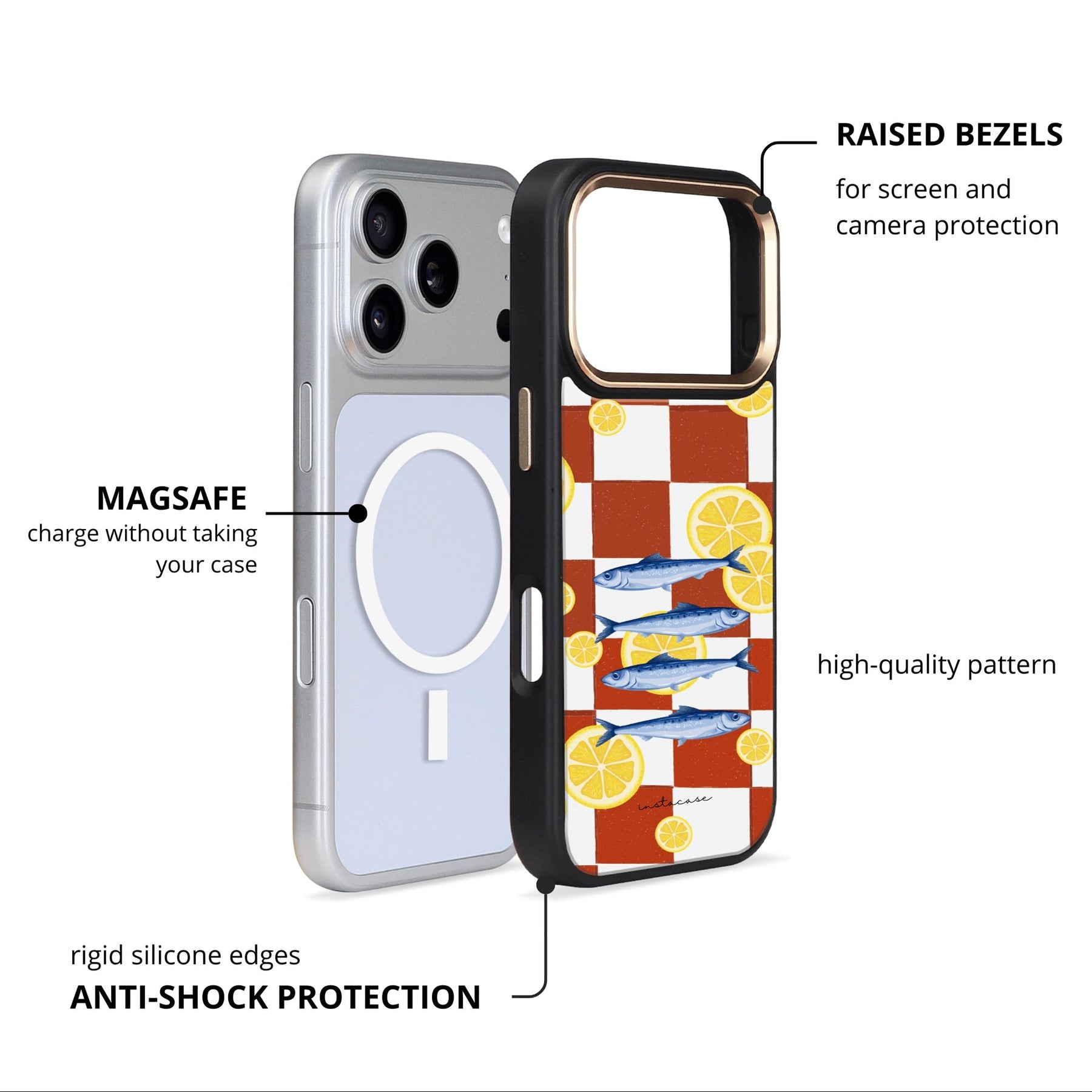 Protección de doble capa, acabado brillante y MagSafe integrado.