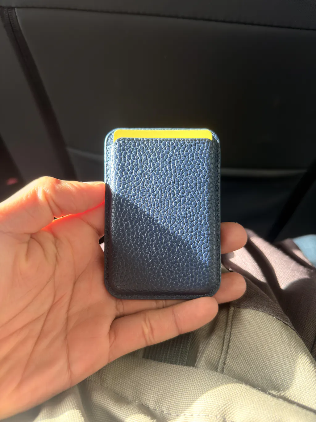 Con su forma ultrafina, el tarjetero MagSafe encaja perfectamente en la tapa y tiene un imán magnético que permite que se adhiera.