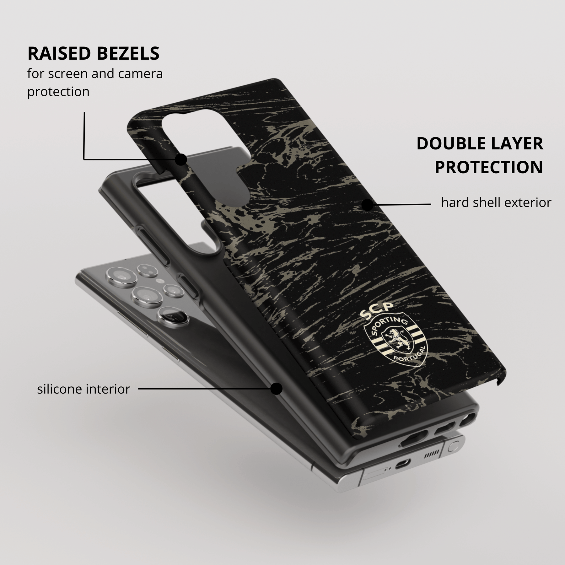 • Doble capa: interior de silicona + exterior de TPU duro