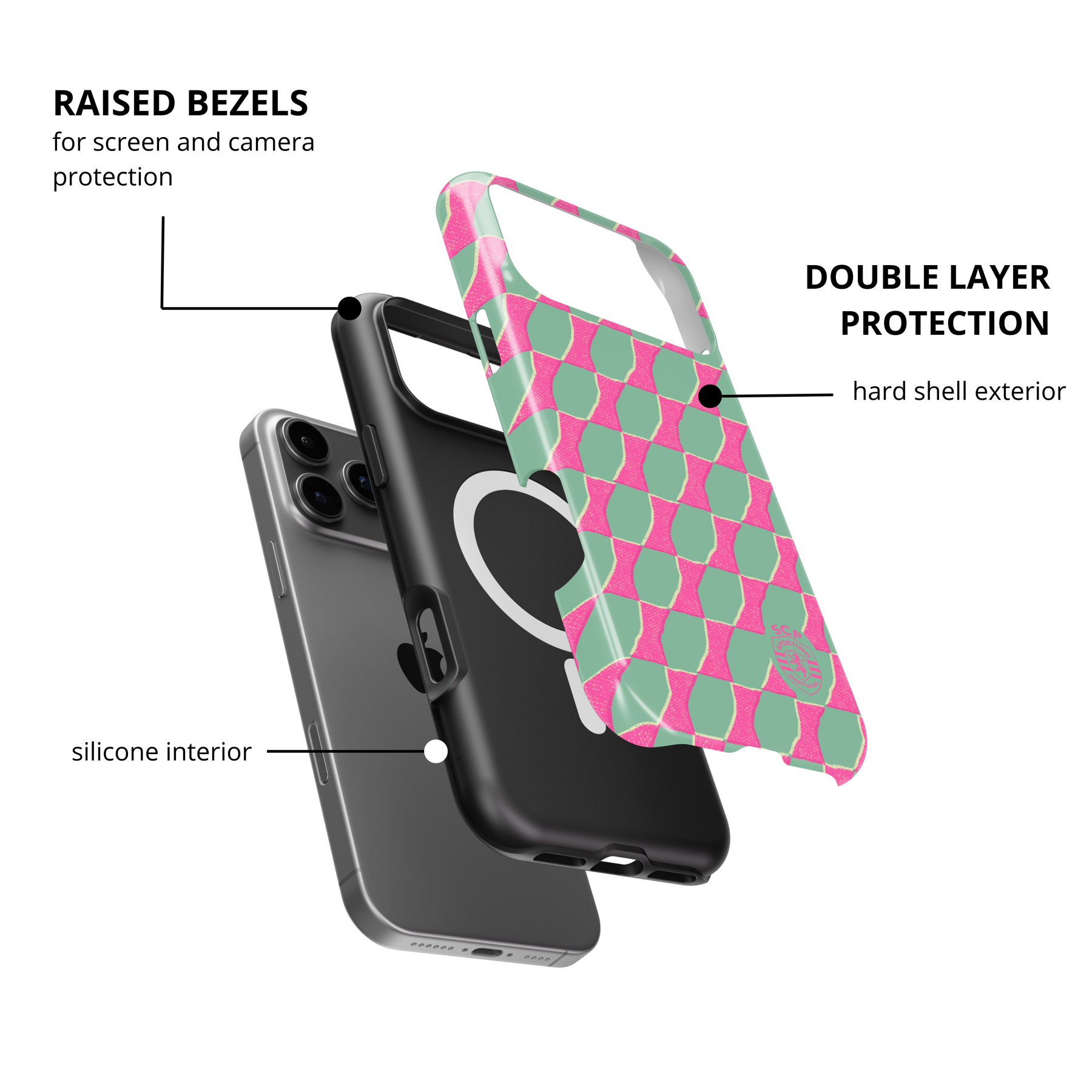 Protección de doble capa, acabado brillante y MagSafe integrado.