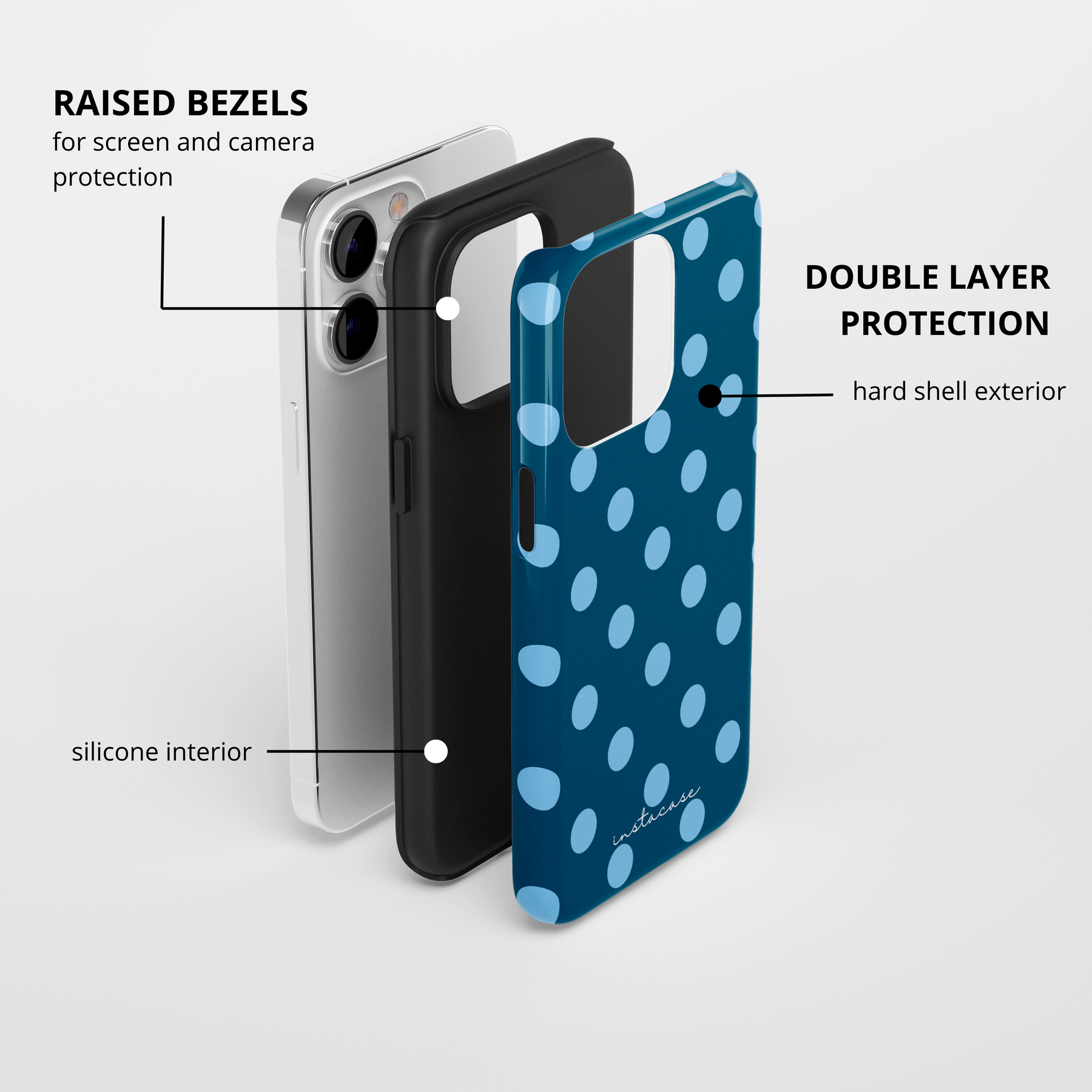 • Doble capa: interior de silicona + exterior de TPU duro