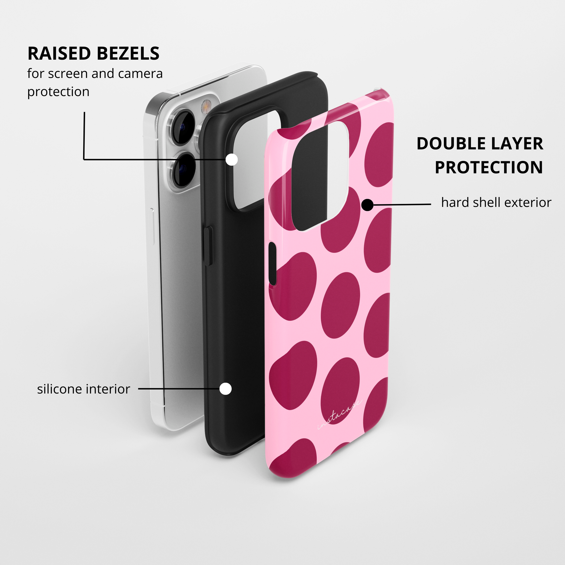 • Doble capa: interior de silicona + exterior de TPU duro