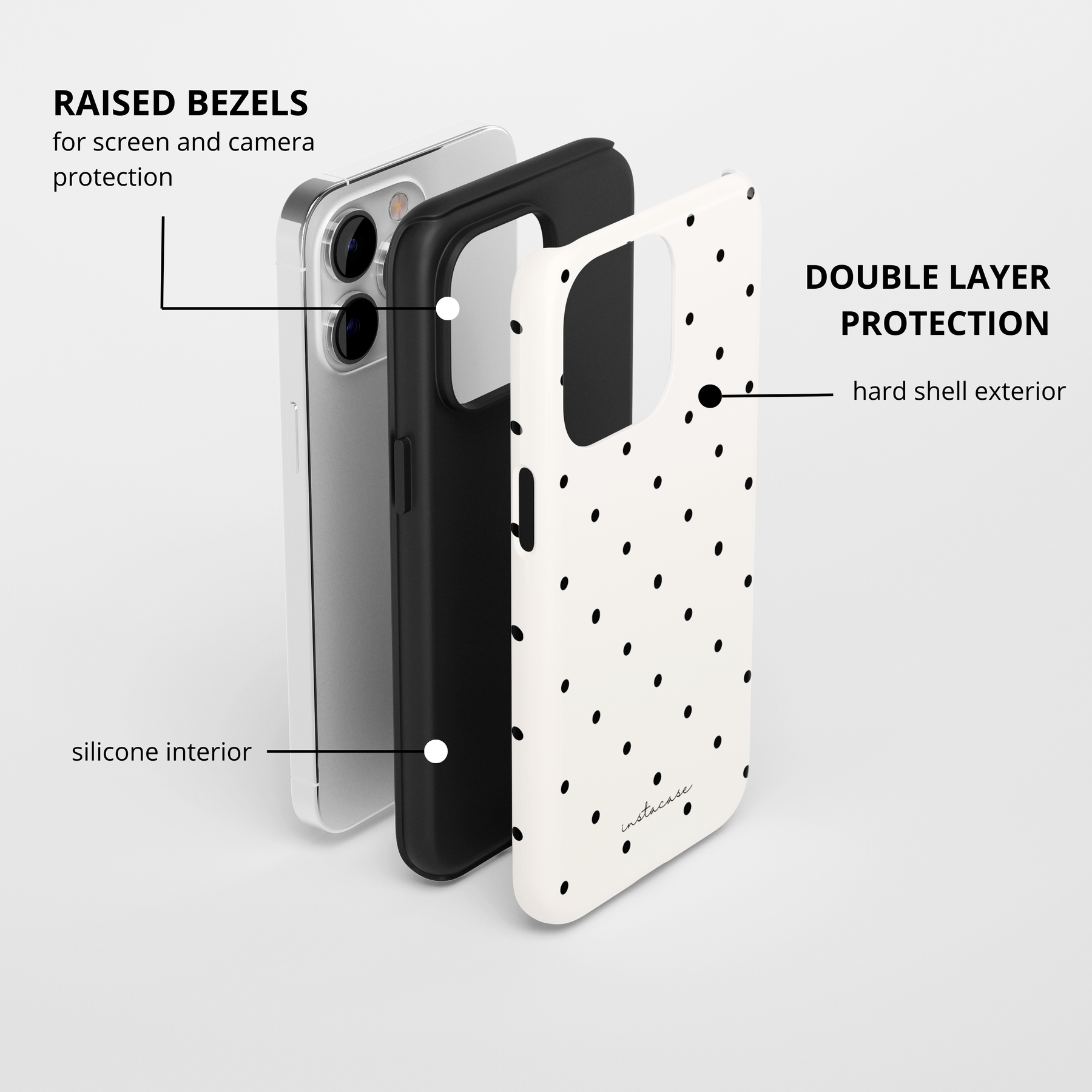 • Doble capa: interior de silicona + exterior de TPU duro