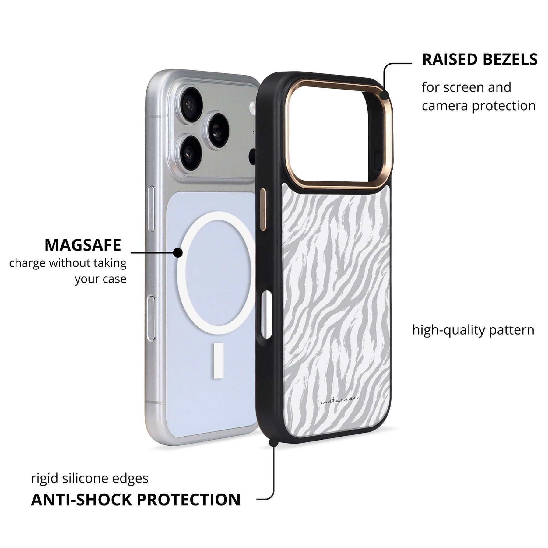 Proteção em dupla camada, acabamento brilhante e MagSafe integrado.