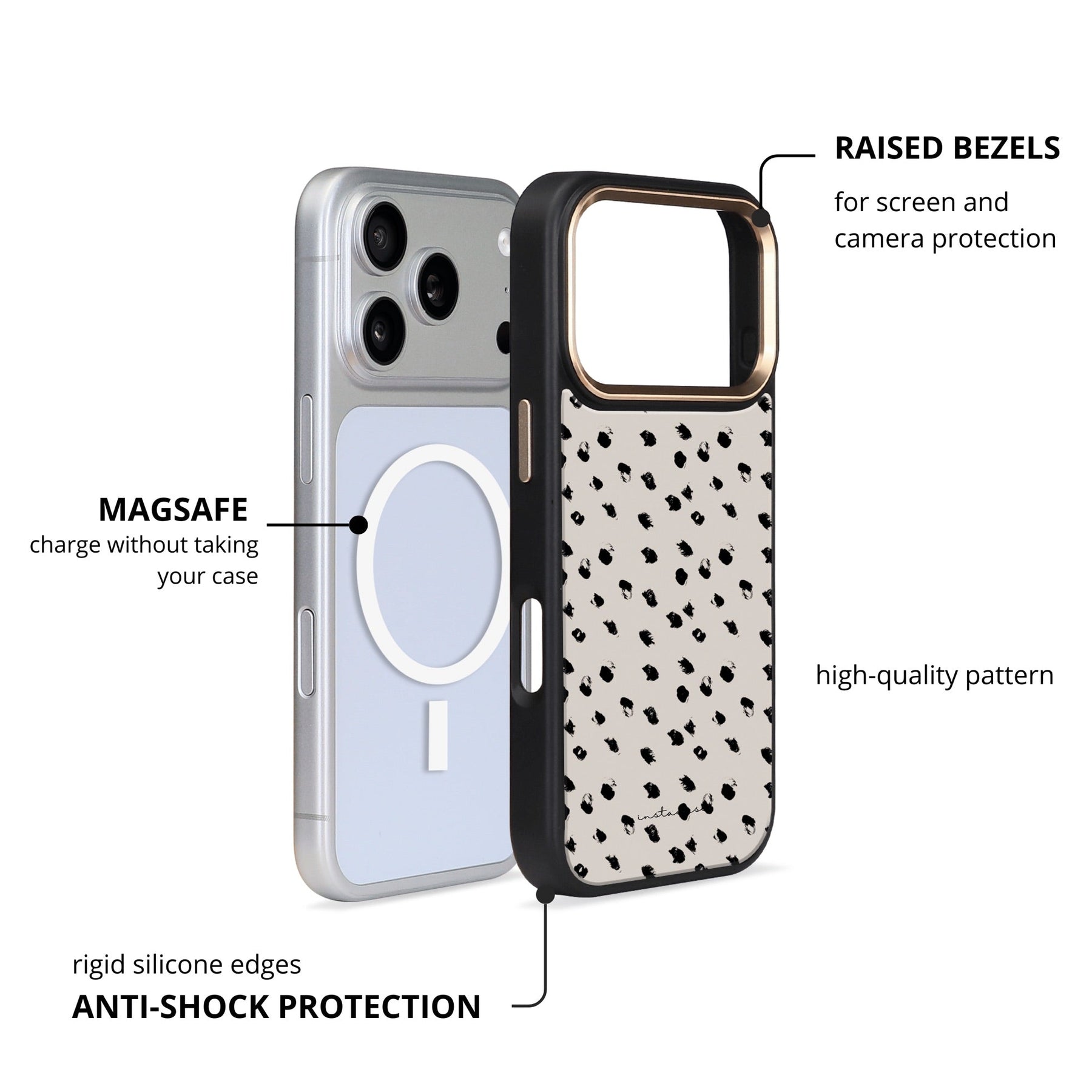 Proteção em dupla camada, acabamento brilhante e MagSafe integrado.