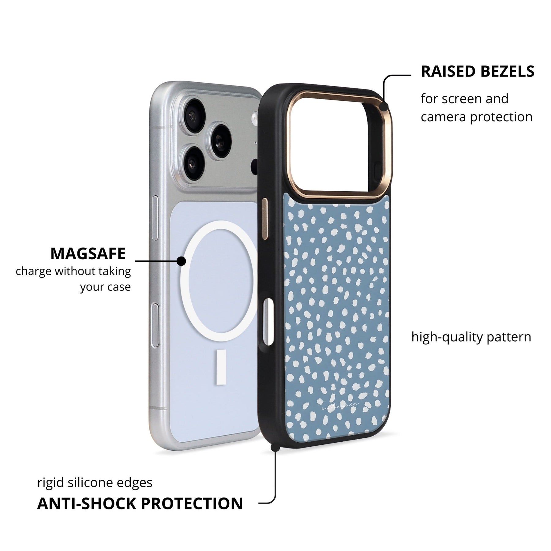Proteção em dupla camada, acabamento brilhante e MagSafe integrado.