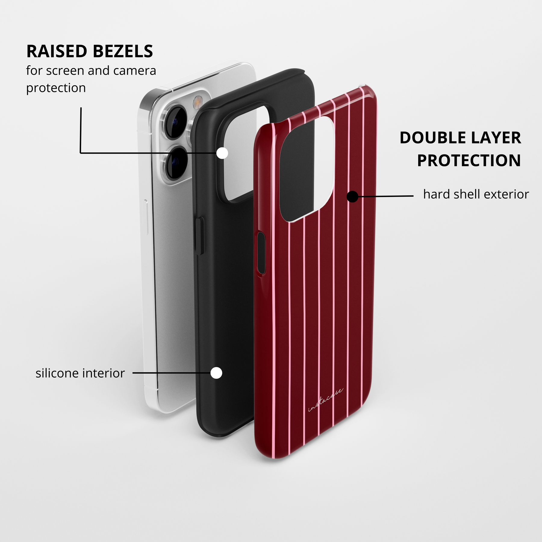 • Camada dupla: interior de silicone + exterior de TPU duro
